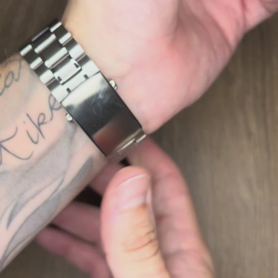 Esta pieza parte de un Omega x Swatch Mission to Mercury original, al que se le ha realizado una modificación artesanal completa. Se conserva el dial gris oscuro con sus subesferas y el bisel taquimétrico típico del Speedmaster, pero la biocerámica original se sustituye por caja y brazalete de acero inoxidable, dando como resultado un reloj con mucha más presencia y solidez en muñeca.